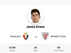 El Athletic Club comunicó oficialmente su intención de cumplir con la cláusula de rescisión de 12 millones de euros de Jesús Areso, cifra que Osasuna había establecido en su contrato, que vencía en junio de 2026. La operación se produce tras el persistente interés del Bilbao y las conversaciones estratégicas con los representantes de Areso en LIAN Sports Group.