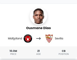 El Sevilla FC ha confirmado oficialmente el fichaje del prometedor defensa Ousmane Diao, procedente del FC Midtjylland danés, en una operación que, según Africafoot, se cerrará en el mercado de invierno por valor de 10 millones de euros. La oferta del club español fue aceptada tras unas intensas negociaciones, en las que el Eintracht Frankfurt también mostró un gran interés por hacerse con los servicios del joven defensa.