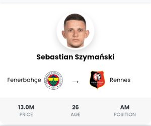 Fenerbahçe, surnommé les « jaunes et bleus foncés », a trouvé un accord avec le club français après des négociations. Le montant total du transfert s’élève à environ 13 millions d’euros, bonus inclus. Si le club stambouliote regrettera de perdre un milieu de terrain clé, cette opération représente une excellente affaire et reflète la valeur marchande croissante de Szymański.